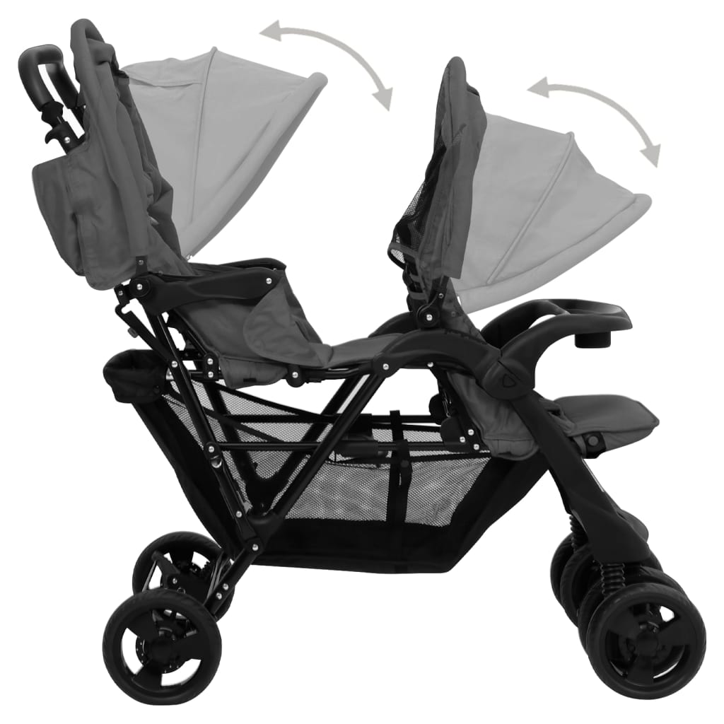 Tandem-Zwillingskinderwagen Dunkelgrau Stahl