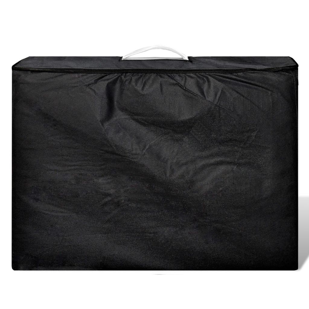 Die klappbare 2-Zonen Massageliege mit Aluminiumgestell eignet sich für Massagen, Shiatsu und Reiki. Die Polsterung mit hochdichtem Schaumstoff bietet hohen Komfort und ist resistent gegen Desinfektionsmittel und Massageöl.Die Massageliege hat eine Kopfstütze und 3 Armlehnen. Die Kopfstütze und die Armlehnen sind verstellbar, ebenso wie die Höhe der Massageliege, wodurch der Kunde bequem liegen kann und der Masseur die gewünschte Arbeitshöhe wählen kann.Der Tisch ist einfach aufzubauen. Er kann in die Form eines Koffers geklappt werden. Die mitgelieferte Tragetasche sorgt für den einfachen Transport und die Aufbewahrung.