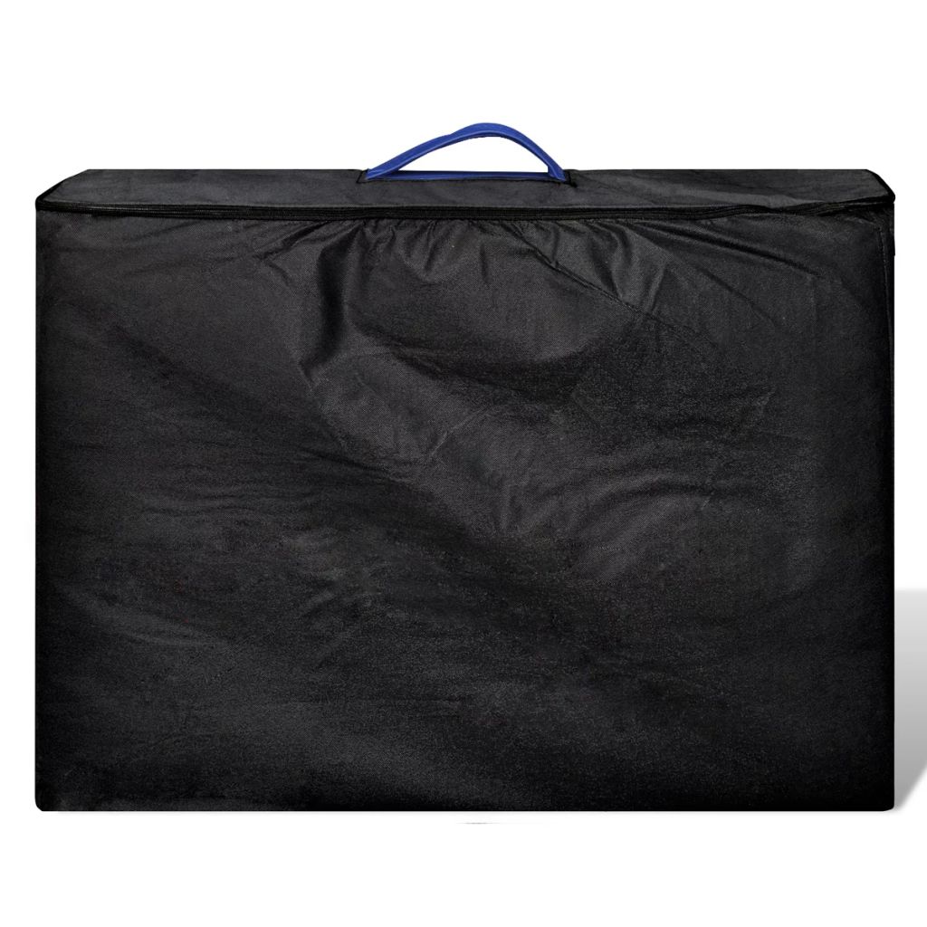 Die klappbare 2-Zonen Massageliege mit Aluminiumgestell eignet sich für Massagen, Shiatsu und Reiki. Die Polsterung mit hochdichtem Schaumstoff bietet hohen Komfort und ist resistent gegen Desinfektionsmittel und Massageöl. Die Massageliege hat eine Kopfstütze und 3 Armlehnen. Die Kopfstütze und die Armlehnen sind verstellbar, ebenso wie die Höhe der Massageliege, wodurch der Kunde bequem liegen kann und der Masseur die gewünschte Arbeitshöhe wählen kann. Der Tisch ist einfach aufzubauen. Er kann in die Form eines Koffers geklappt werden. Für den einfachen Transport und die Aufbewahrung ist eine Tragetasche im Lieferumfang enthalten.