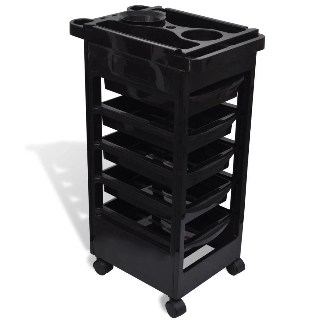 Dieser Arbeitswagen ist eine gute Wahl, um Ihre Werkzeuge organisiert, aufgeräumt und griffbereit zu halten. Er eignet sich perfekt für Schönheitssalons, Tattoo-Shops, Nagelstudios, Tier-Pflegesalons und andere Arbeitsbereiche. Dieser Wagen bietet alles, was Sie von einem hochwertigen Salonwagen erwarten. Es hat ein schlichtes und zugleich stilvolles Design und verfügt über insgesamt fünf Schubladen für Werkzeuge und Zubehör. Das obere Tablett verfügt über integrierte Halter für Haartrockner und Sprühflaschen. Die unteren Tabletts bestehen aus starkem Kunststoff und können mühelos ausgezogen werden. Dank den vier Rollen können Sie den Wagen leicht umstellen und das Wichtigste in Reichweite aufbewahren.