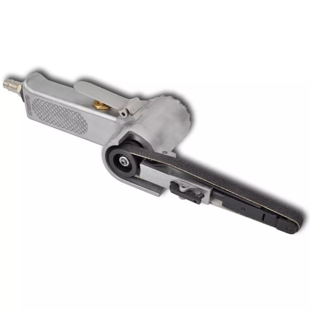 Diese pneumatische Schleifmaschine zeichnet sich durch geringes Gewicht, hohe Sicherheit, Geschwindigkeit und Effizienz sowie durch bequeme Anwendung aus. Ausgestattet mit einem um 360 Grad verstellbaren Schleifkopf, eignet sich dieser Druckluft-Bandschleifer perfekt für schnelles und gründliches Schleifen an schwer zugänglichen Stellen, wie z.B. von Schweißschlacken, Schweißverbindungen und groben Werkstückkanten. Der pneumatische Bandschleifer wird mit 3 Bändern (60-er, 80-er und 120-er Körnung) geliefert, die ohne Werkzeug schnell ausgetauscht und durch eine Federkraft automatisch gespannt werden können, was eine sichere Bandführung gewährleistet.