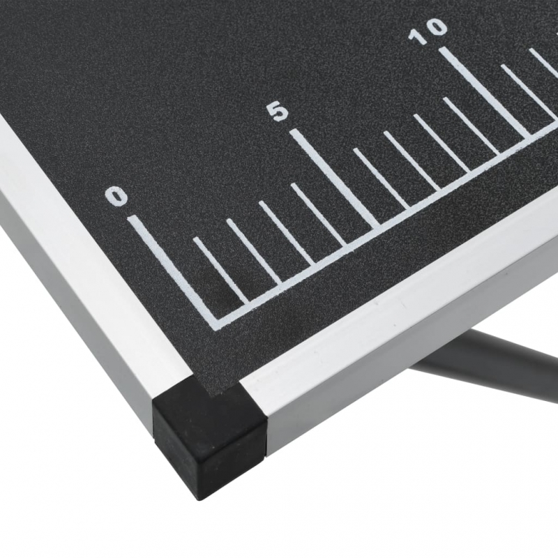 Dieser zusammenklappbare Tapeziertisch mit praktischer Lineal-Markierung eignet sich ideal für vielfältige Anwendungen, wie zum Auftragen des Kleisters auf die Tapete, für Wohndekoration, Bastelprojekte, Materialmessung und mehr! Dieser Tapeziertisch hat einen starken Rahmen aus leichtem Aluminium und eine pflegeleichte, schwarze MDF-Tischplatte mit einer maximalen Nutzlast von 30 kg. Der Tisch ist mit W-förmigen Stahlrohrbeinen für Stärke und Haltbarkeit ausgestattet und kann für Lagerung und Transport einfach platzsparend zusammengeklappt werden. Dieser Artikel ist bereits zusammengebaut; eine Montage ist nicht mehr erforderlich.