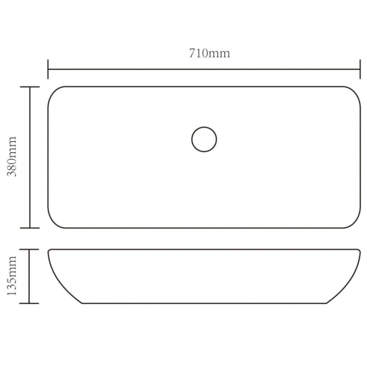 Dieses rechteckige Waschbecken, aus hochwertiger Keramik hergestellt, ist eine stilvolle Ergänzung zu jedem Badezimmer, Waschraum oder Schminkraum. Seine hochglänzende Oberfläche schafft ein modernes, elegantes Design.Dieses künstlerische Keramikbecken ist nicht nur ein praktisches Gefäß für den Alltag, sondern auch eine Verzierung für Ihren Wohnraum. Es kann sich perfekt jedem Einrichtungsstil anpassen. Darüber hinaus lässt sich das Waschbecken leicht reinigen. Das Ablaufloch hat einen Durchmesser von 4,5 cm.Bitte beachten Sie, dass der Wasserhahn nicht im Lieferumfang enthalten ist.