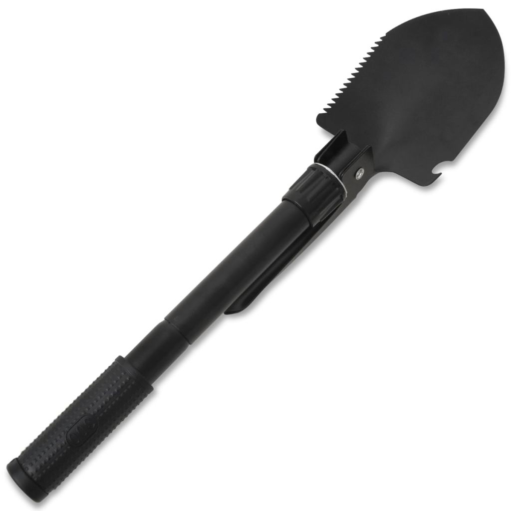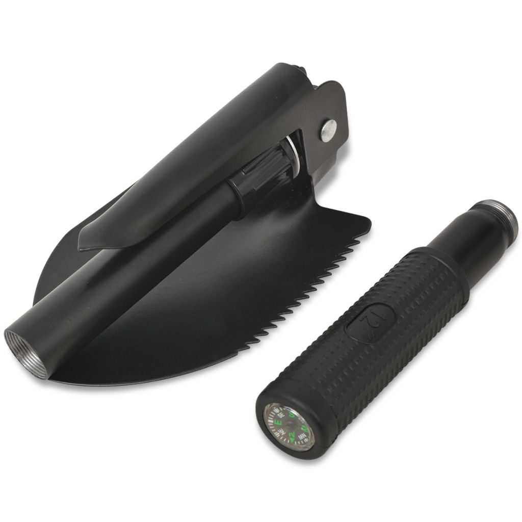 Dieser vielseitig einsetzbare Klappspaten ist das perfekte Werkzeug für Camper, Schatzsucher und Geocachers, aber auch ideal, um es im Kofferraum Ihres Autos zu haben, falls Sie es brauchen sollten. Aus hochwertigem Kohlenstoffstahl gefertigt, ist der Spaten robust und leicht zugleich. Er kann als Schaufel, Spitzhacken, Säge und Flasche-/ Dosenöffner verwendet werden. Er ist sogar mit einem Kompass am Griffende versehen. Der Spaten ist zusammenklappbar und kann in der mitgelieferten, praktischen Hülle aufbewahrt werden.