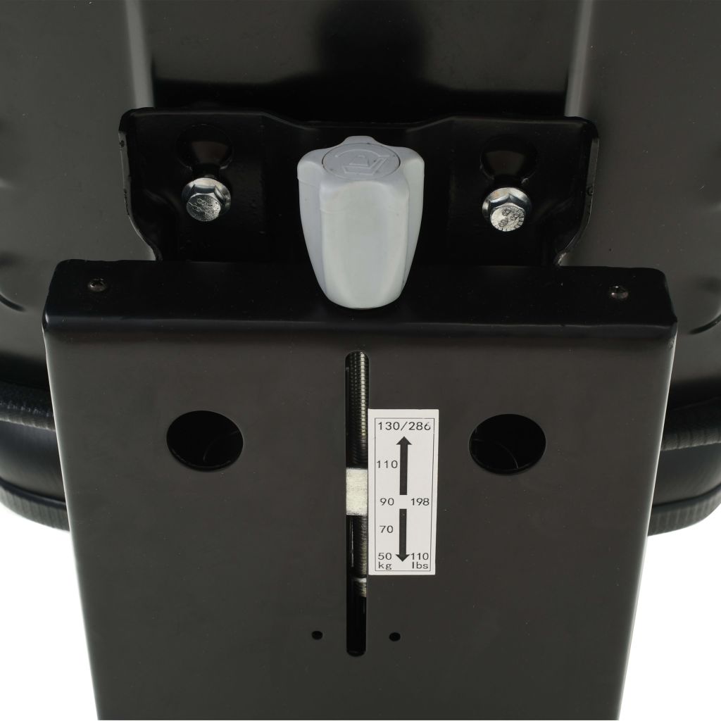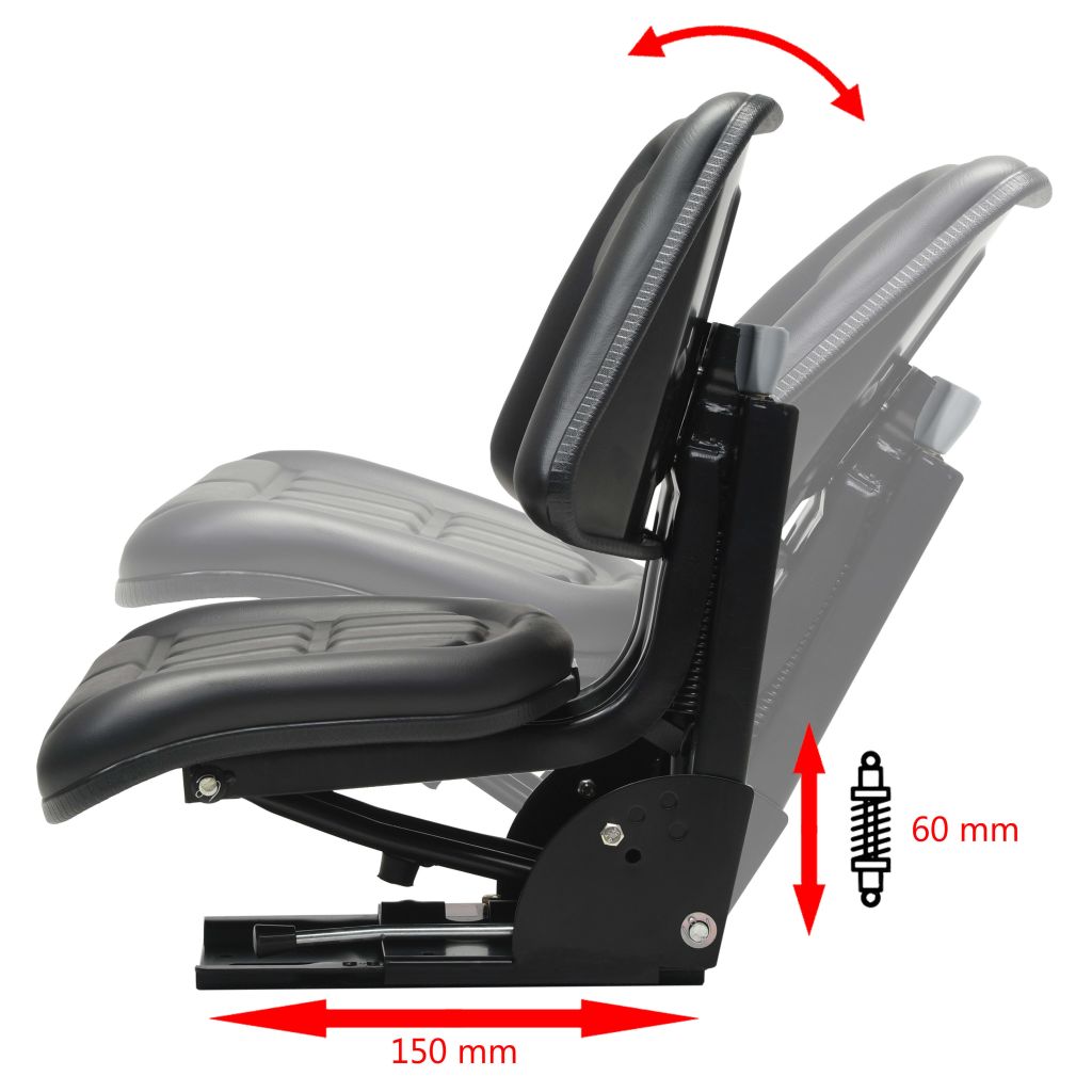 Dieser qualitativ hochwertige Traktorsitz verfügt über einen stabilen Stahlrahmen und ist mit langlebigem sowie wasserabweisendem PVC-Material bezogen. Die zahlreichen Einstellmöglichkeiten und der dick gepolsterte Sitz sorgen für den höchsten Komfort bei Arbeiten auf Ihrem Traktor. Der Traktorsitz ist für ein Benutzergewicht von 50 bis 130 kg bestimmt und lässt sich ganz einfach mittels des Knopfs hinter der Rückenlehne auf das Benutzergewicht einstellen. Die Schwerlast-Federung fängt Stöße selbst auf rauem Gelände auf, um Ihnen eine möglichst reibungslose Fahrt mit Ihrem Traktor zu garantieren. Dieser Traktorsitz ist zudem auch mit Führungsschienen ausgestattet, so dass er sich ganz einfach und bequem um 150 mm nach vorne bzw. hinten verschieben lässt und die Basis ist in 5 verschiedenen Neigungswinkeln verstellbar. Dank Löchern in der Grundplatte erfolgt die Installation ganz schnell und einfach.