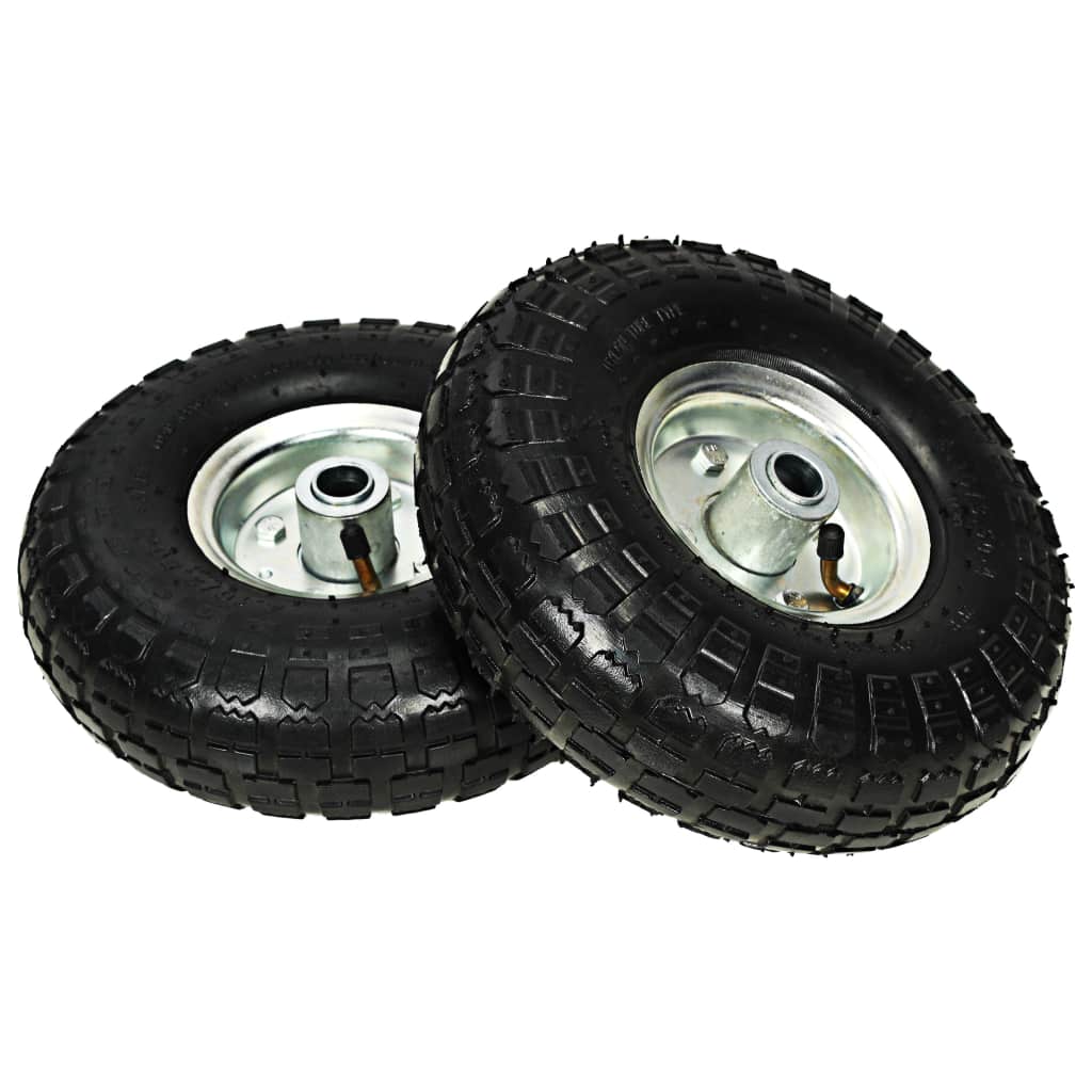 Die pannensicheren Karren-Ersatzräder eignen sich ideal, um Lasten mit Ihren Sackkarren, Handkarren, Transportwagen, Rollwagen, Dollies, Schubkarren, usw. selbst auf unebenen Böden zu bewegen. Die Luftreifen bestehen aus langlebigem, abriebfestem Gummi und verfügen über ein besonderes Laufflächenprofil, dass für zusätzlichen Halt bei höheren Geschwindigkeiten sorgt. Die Felgen sind aus robustem Metall gefertigt. Die Ersatzräder kommen in universaler Größe und lassen sich daher ganz leicht an Ihren Sackkarren, Wagen, usw. anbringen. Der Lieferumfang umfasst 4 Räder.