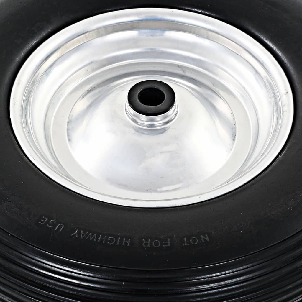 Sind Sie es leid, Reifenpannen zu reparieren? Dann ist unser durchschlagsicheres Schubkarrenrad die beste Wahl, da der Reifen aus einem festen Material besteht. Das Ersatzrad eignet sich ideal, um schwere Lasten mit Ihren Schubkarren, Sackkarren, Handwagen, Transportwagen, Rollwagen, Dollies, usw. selbst auf unebenen Böden zu bewegen. Der Vollreifen besteht aus langlebigem, abriebfestem PU-Elastomer und verfügt über ein besonderes Laufflächenprofil, dass für zusätzlichen Halt bei höheren Geschwindigkeiten sorgt. Die Felge ist aus robustem Metall gefertigt. Das Ersatzrad kommt in universaler Größe und lässt sich daher ganz leicht an Ihren Schubkarren, Sackkarren, Handwagen, usw. anbringen. Die Lieferung umfasst 1 Rad und 1 Achse.