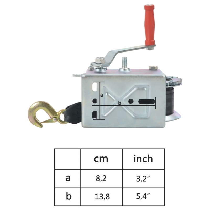 Diese 1130 kg Handwinde mit Gurt ist ein ideales Werkzeug zum Ziehen großer oder schwerer Gegenstände. Diese robuste Handwinde mit leichtem und dennoch hochfestem Gurt ist extrem robust. Der aus Polyester gefertigte Gurt ist korrosions- und wetterfest und verwickelt sich beim Ziehen nicht. Darüber hinaus kann der Gurt Vibrationen reduzieren, wenig Reibung und weniger Kratzer auf Ihrer Stoßstange verursachen. Dank des hochwertigen Eisens, das bei der Konstruktion verwendet wird, ist die Handwinde sehr langlebig und für einen langfristigen Einsatz ausgelegt. Diese Handwinde mit Gurtband ist ideal zum Ziehen von Lkws und Anhängern sowie für andere mobile Anwendungen. Sie können in unserem Shop nach dem passenden Bootsanhänger-Windenstand (SKU 90634) für das komplette Set suchen.