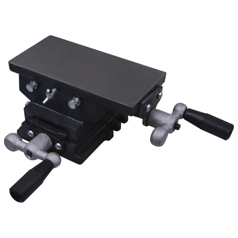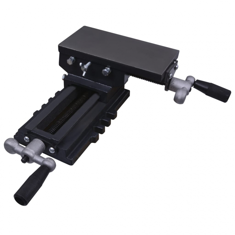 Dieser Kreuzschlitten-Schraubstock ist ein praktisches Gerät zum präzisen Bohren und Fräsen. Die glatte Stahloberfläche und die stabile Basis ermöglichen es Ihnen, das Werkstück fachmännisch zu berabeiten. Der Schraubstock aus Gusseisen ist sehr stark und steif. Die Richtung der Grundbewegung kann mit zwei Kurbelgriffen eingestellt werden, um präzises Bohren oder Fräsen zu ermöglichen. Dieses Gerät verfügt außerdem über einen stabilen Sockel, der für einen stabilen Betrieb einfach auf Ihrer Werkbank montiert werden kann.