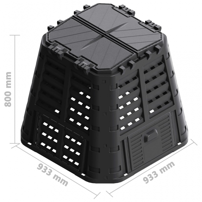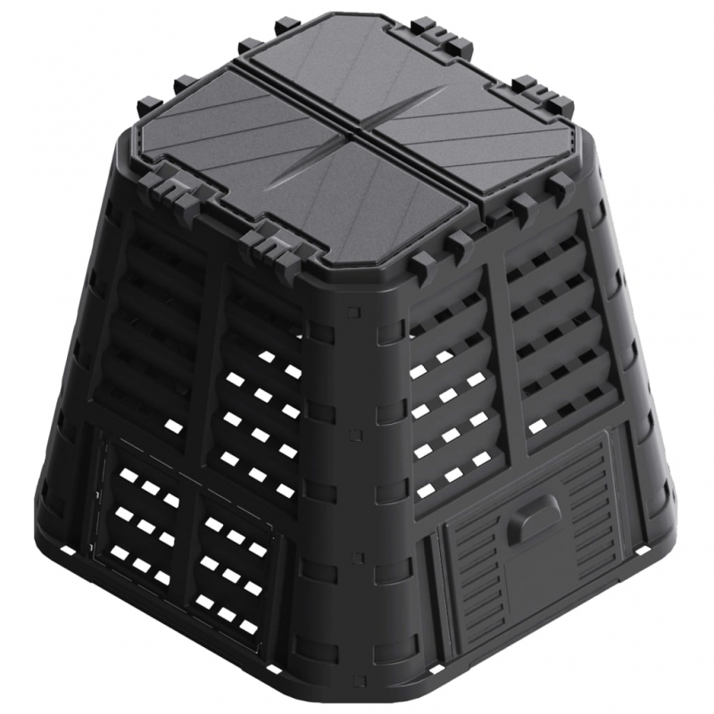 Dieser witterungsbeständige Thermokomposter hilft, die Zersetzung organischer Stoffe zu beschleunigen und selbst Dünger zuzubereiten. Der Abfall-Konverter ist sowohl für Garten- als auch für Küchenabfälle geeignet. Eine hohe Wärmeentwicklung innerhalb des Kompostbehälters fördert eine schnellere bakterielle Zersetzung und erzeugt einen besseren Humus. Der kompakte Gartenkomposter nimmt wenig Platz ein, bietet aber viel Volumen. Der Deckel erleichtert das Befüllen von oben während die Klappöffnung für eine einfache Entfernung des Humus sorgt. Das Tropfbewässerungssystem, das Vorhängeschlossloch, die robusten seitlichen Verriegelungen, die starken Scharniere, der bequeme Griff und die großen Schiebetüre gewährleisten eine benutzerfreundliche Verwendung.