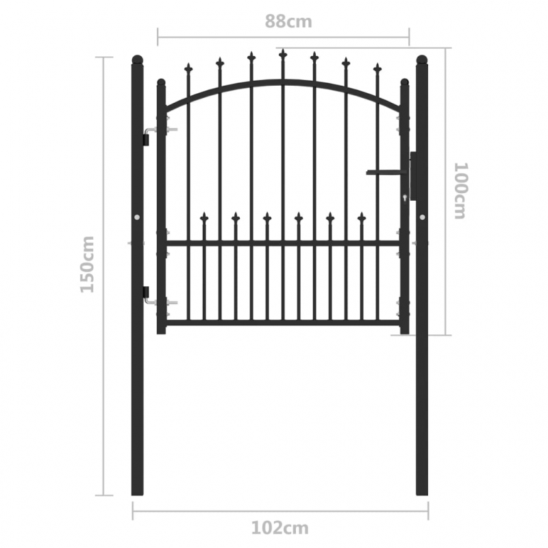 Dieses Zauntor bildet eine praktische Sicherheitsbarriere für Ihren Garten, Ihren Innenhof oder Ihre Terrasse. Das aus robustem Stahl gefertigte Zauntor hat eine robuste Konstruktion und wurde gegen Rost und Korrosion pulverbeschichtet. Mit den vertikalen Stäben mit Spitzen und der starken horizontalen Strebe als Verstärkung bietet dieses Gartentor ein hohes Maß an Sicherheit. Das gewölbte Oberteil trägt zu seiner Eleganz bei. Es wird mit zwei stabilen Pfosten und robusten Scharnieren für eine einfache Montage geliefert, und ein Schließsystem mit drei passenden Schlüsseln ist ebenfalls im Lieferumfang enthalten.