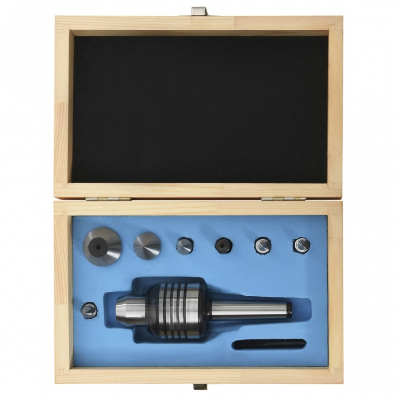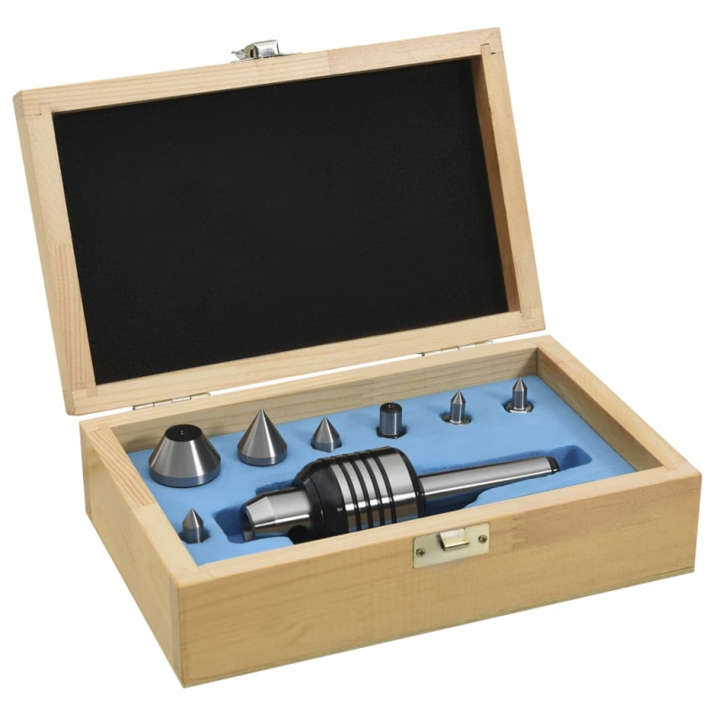 Die langen, dünnen und schweren Werkstücke können mit diesem Rollkörner-Set mit 7 austauschbaren Köpfen sicher und genau bearbeitet werden. Mithilfe der Mittellochpositionierung weisen die Werkstücke eine hohe Maßgenauigkeit auf. Dieses MT2 Rollkörner-Set besteht aus hitzebeständigem Stahl von hoher Härte, hoher Präzision und Korrosionsbeständigkeit. Dieses Set bietet außerdem eine maximale Drehzahl von 3000 U/min und eine maximale Last von 200 kg. Mit 7 austauschbaren Köpfen bietet Ihnen dieser Werkzeugsatz mehr Auswahlmöglichkeiten und ermöglicht es Ihnen, die Werkstücke mit feinen Details zu versehen. Zusätzlich enthält die Lieferung eine Aufbewahrungsbox mit Auskleidung gegen Stöße und zur einfachen Lagerung und zum Transport.