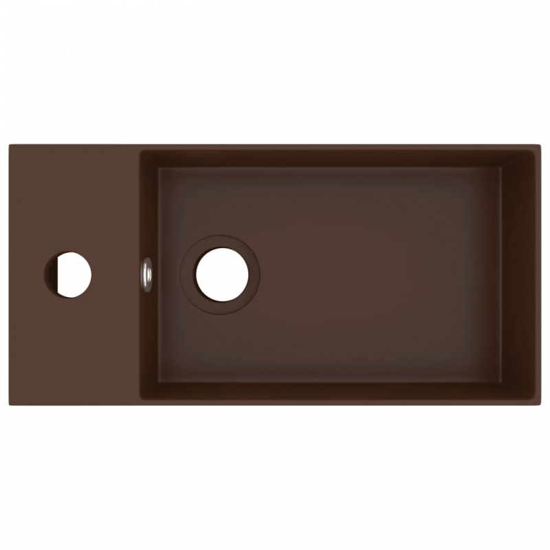 Das Waschbecken verleiht jedem Badezimmerdekor ein zeitgemäßes Flair. Es ist für Waschräume, Küchen oder Arbeitsräume geeignet. Die Qualitätskeramik mit matter Oberfläche ermöglicht eine einfache Reinigung. Ein Überlaufloch ist so ausgerichtet, dass Wasser abfließen kann, wenn das Becken voll wird. Ein Hahnloch ist angebracht, um die Installation eines Wasserhahns zu ermöglichen. Das Abflussloch hat einen Durchmesser von 4,5 cm. Es kann als Aufsatzwaschbecken auf einem Waschtisch montiert werden. Bitte beachten: Der Hahn ist nicht im Lieferumfang enthalten.