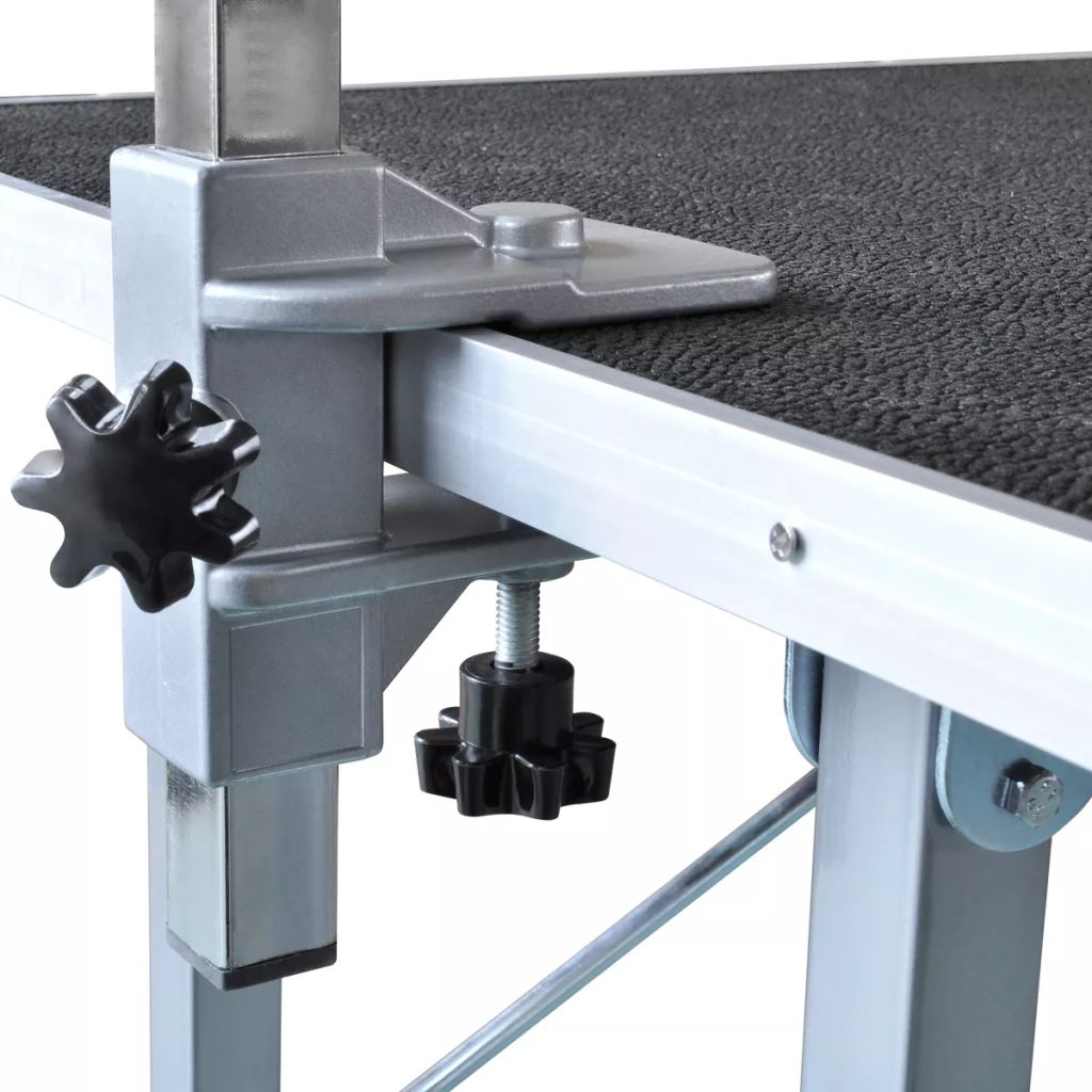 Dieser Trimmtisch ist die perfekte Wahl für den Privatgebrauch, für die professionelle Verwendung im Hundesalon oder für Hundeausstellungen. Eine rutschsichere Arbeitsfläche, ein pulverbeschichteter Stahlrahmen und eine höhenverstellbare Halterung gehören zur Ausstattung dieses Schertisches. Dieser professionelle Trimmtisch ist vielseitig einsetzbar, klappbar und bringt Ihr Tier auf eine komfortable Arbeitshöhe. Die Tischplatte verfügt über einen rutschfesten Gummibelag und bietet einen stabilen und sicheren Halt für ihr Haustier während des Pflegerituals. Die stabile Halterung kann bei Nichtgebrauch ganz einfach abmontiert werden - so benötigt der klappbare Tisch bei der Lagerung oder beim Transport nur wenig Platz. Die Höhe der Halterung kann angepasst werden und hält Ihren Hund oder Ihre Katze sicher an Ort und Stelle. Zusätzlich wurde sie von uns mit einem noch besseren Verriegelungsschieber ausgestattet. Die Lieferung enthält 1 x Trimmtisch, 1 x höhenverstellbarer Galgen mit Klemme und 1 x Halterung mit Haltegurt.