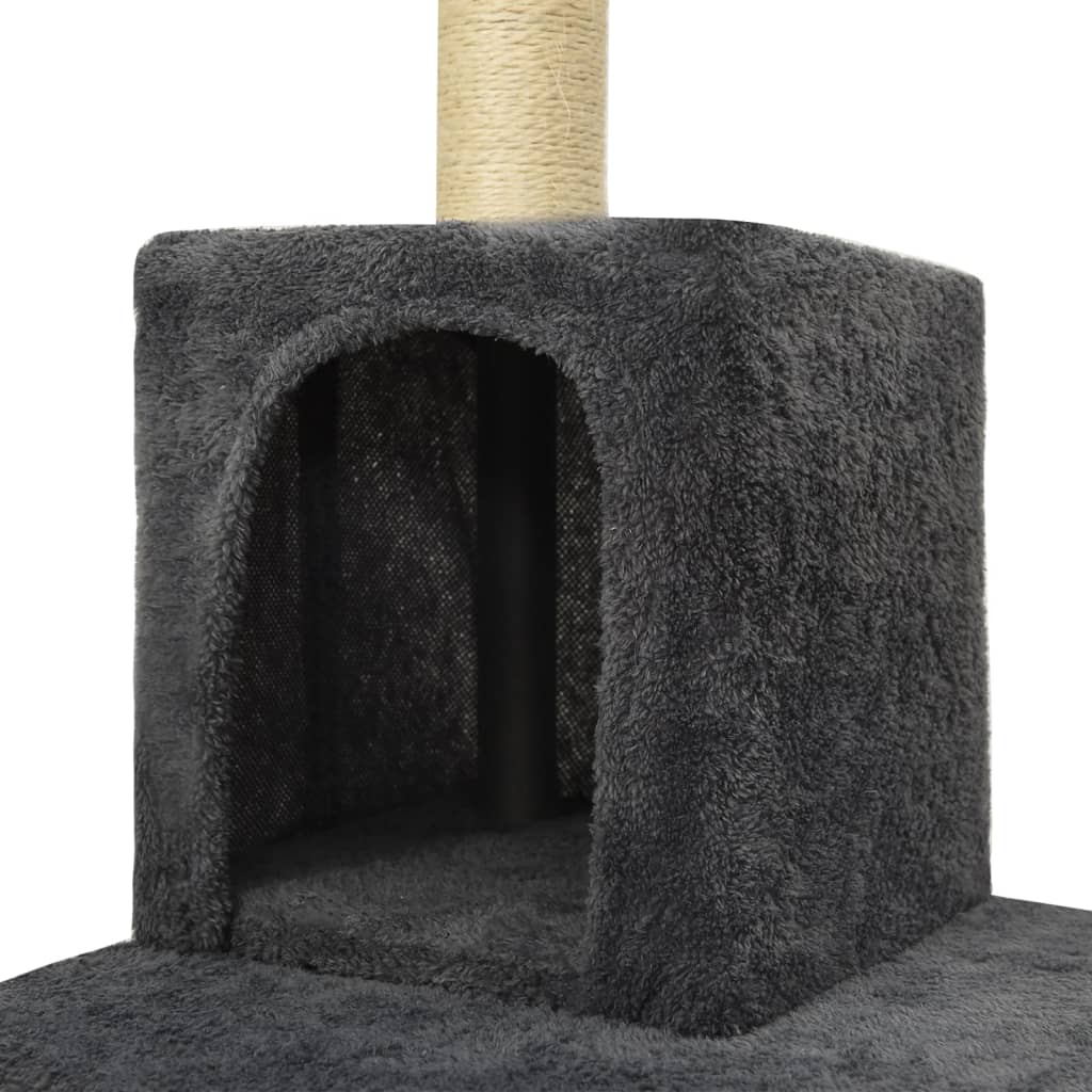 Dieser Kratzbaum ist der perfekte Rückzugsort für Ihre Katzen zum Kratzen, Klettern, Sitzen, Verstecken und Ausruhen. Er gibt Ihren Katzen die Möglichkeit, sich zu strecken und zu bewegen, besonders in den kalten Wintermonaten, wenn sie im Haus sind. An den mit Sisalseilen umwickelten Kratzbäumen können Ihre pelzigen Freunde ihre Krallen schärfen, was ihrem Kratzinstinkt einen gesunden Auslauf bietet. Darüber hinaus werden sie sich auch daran erfreuen, sich gegenseitig hinterherzujagen, während sie auf diesem lustigen Katzenmöbel auf und ab springen. Wenn sie genug Spielzeit genossen haben, werden Ihre kleinen Freunde es lieben, sich auf den oberen Plattformen des Katzenbaums auszuruhen, wo sie eine bessere Aussicht genießen. Außerdem können sie sich im gemütlichen Haus verstecken, um ein Nickerchen zu machen oder sich auf dem bequemen Plüschsitz ausruhen. Mit all diesen unterhaltsamen Funktionen wird dieser Kratzbaum definitiv zum Lieblings-Treffpunkt Ihrer vierbeinigen Freunde!