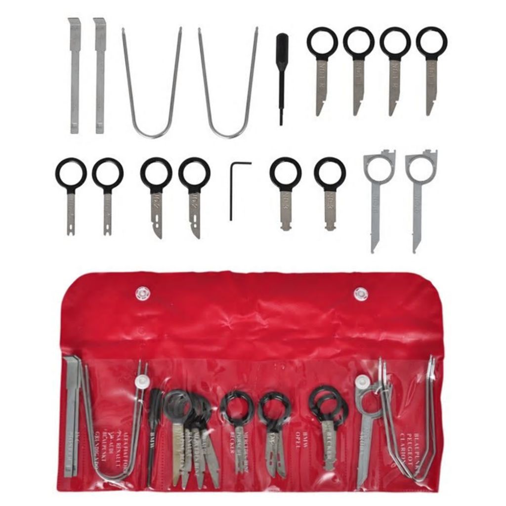 Dieses Autoradio-Ausbauwerkzeug-Set ist ideal für HiFi-Händler und Heimwerker, Automechaniker, Autoreparaturwerkstätten und anderen Werkstätten.Dieses Ausbauwerkzeug-Set beinhaltet: 4 x Radio-Entfernungsschlüssel (für neuen VW Käfer/Audi) 2 x Radio-Entfernungsschlüssel (für Mercedes Benz) 2 x Radio-Entfernungsschlüssel (für VW) 2 x Radio-Entfernungsschlüssel (für neuen Skoda) 2 x Radio-Entfernungsschlüssel (für neuen Becker) 2 x Radio-Entfernungsschlüssel (für Pioneer) 2 x DIN-Radio-Entfernungs-U-Haken (für Ford/VW/Audi/New Blaupunkt) 1 x Innensechskantschlüssel (für BMW) 2 x DIN-Radio-Entfernungs-U-Haken (für Ford/VW/Audi) 1 x Spezial-Fünfkantschlüssel (für BMW) Das gesamte Zubehör wird komplett in einer praktischen Plastiktüte zur Aufbewahrung geliefert.