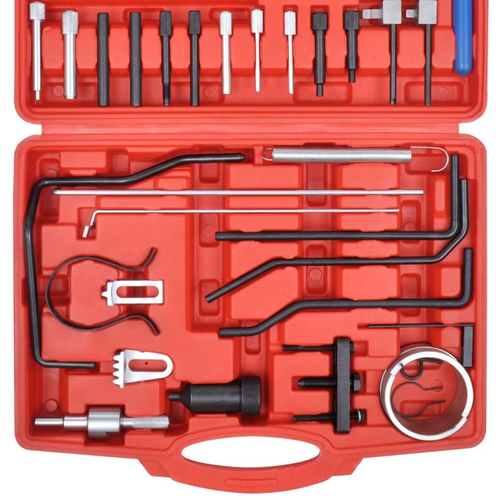 Dieses Diesel- & Benzinmotor Zahnriemen-Werkzeug ist ideal zum Austausch des Zahnriemens und andere Motorreparaturen geeignet. Es ist ein unverzichtbares Werkzeugset für Profis und Hobbymechaniker. Das Werkzeug ist sehr strapazierfähig, da es aus qualitativ hochwertigen Materialien besteht. Es wird in einer blasgeformten Box geliefert, sodass es einfach gelagert und transportiert werden kann.