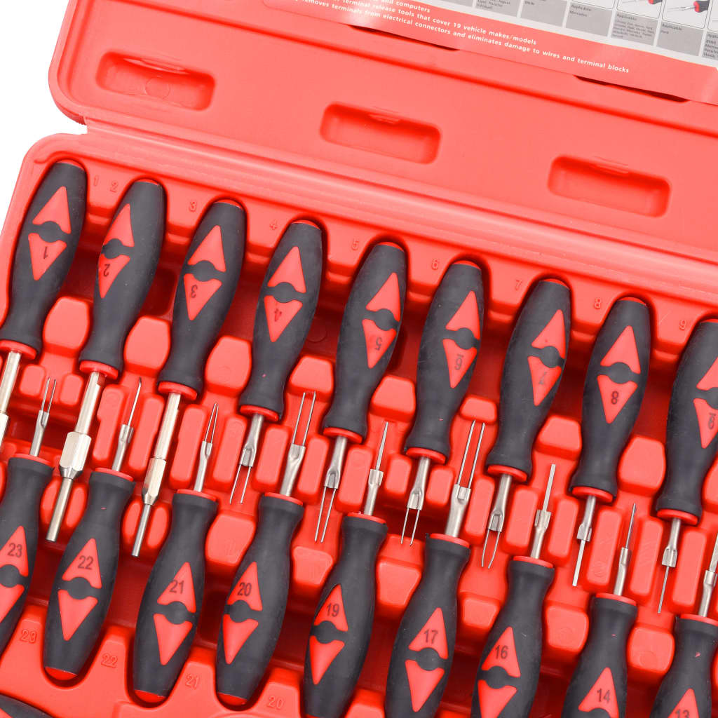 Dieser Werkzeugsatz dient für die beschädigungsfreie Entriegelung der Anschlussstecker an der Fahrzeugelektronik konzipiert. Unsere Entriegelungswerkzeuge sind für runde und flache Steckkontakte geeignet, die fast alle Fahrzeugarten wie VW, Opel, Ford, Mercedes-Benz, Audi, BMW und Renault verwenden. Alle Teile werden in einem praktischen, blasgeformten Werkzeugkoffer zur einfachen Aufbewahrung und Transport geliefert.