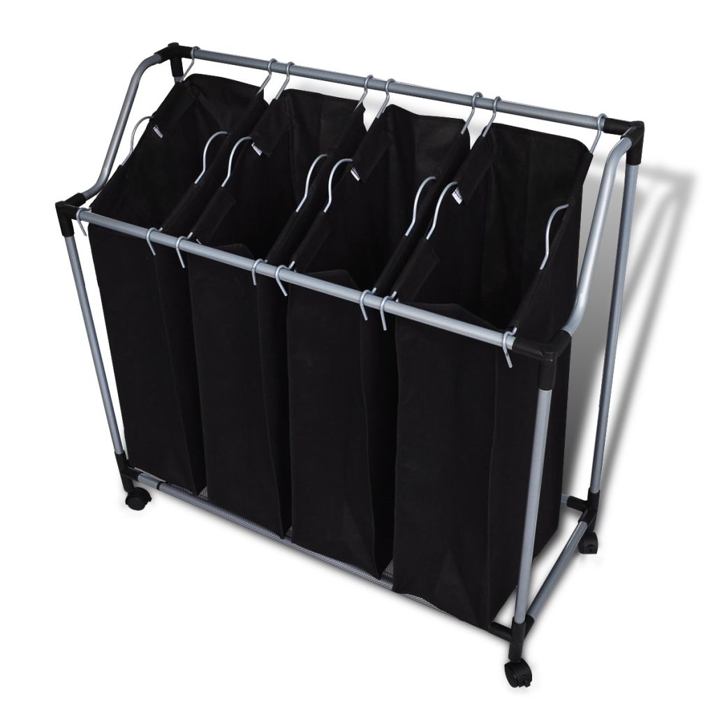 Der Wäschesammler ist ideal zur Organisierung Ihres Wäschereiraums, Hauswirtschaftsraums und Schranks, und Ihre individuellen Bedürfnisse perfekt zu erfüllen. Dieser Wäschesammler besteht aus vier getrennten Wäschebeuteln und ist die optimale Lösung zur Trennung der Wäsche.Der Wäschesortierer aus langlebigem und rust-resistantem Stahlrahmen wird auf glatten gleitenden Räder für einfaches Manövrieren festgesetzt. Mit dem Stahl Tragegriff und Rollen an Wagen wird die Wäsche leicht transportiert.Maximale Belastung bis 20kg.Leicht zu montieren und zu warten.