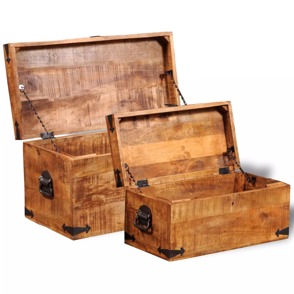 Diese 2 Holztruhen sind eine zeitlose Bereicherung für dein Zuhause und bieten reichlich Stauraum, um deine Sachen ordentlich aufzubewahren. Dieses Truhen-Set ist aus Massivholz komplett handgefertigt, was jedes Stück zu einem Unikat macht. Raues Mangoholz ist robust, stabil, langlebig und optisch ansprechend. Wichtiger Hinweis: Die Farben variieren von Stück zu Stück, was jede Truhe einzigartig macht. Die Lieferung erfolgt nach dem Zufallsprinzip, was die Exklusivität und Individualität deines Produkts gewährleistet.