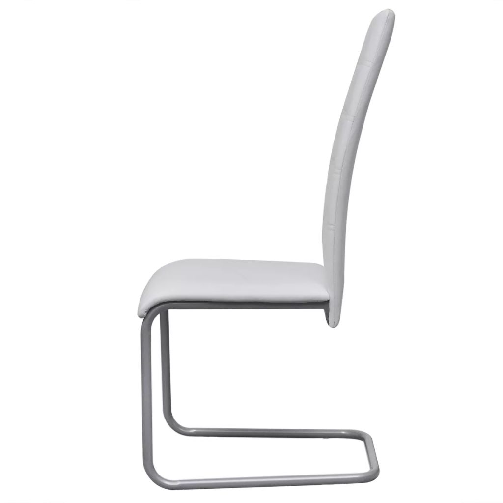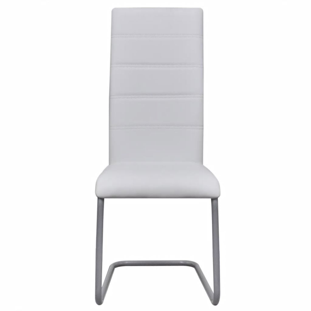 Diese Freischwinger weisen einen schlanken, stromlinienförmigen Look auf, der perfekt zum modernen Wohndesign passt. Sie verleihen deinem Essbereich oder Büro eine stilvolle Note. Mit Schaumstoff gepolstert und mit Kunstleder bezogen, sind die Stühle sehr strapazierfähig und auf Langlebigkeit ausgelegt. Die hohe Rückenlehne bietet höchsten Komfort und stützt deinen Rücken optimal. Darüber hinaus ist dieses Esszimmerstuhl-Set nicht nur leichtgewichtig, sondern auch stabil, dank der starken Stahlrohrstruktur. Die Montage ist ganz einfach. Die Lieferung umfasst 4 Esszimmerstühle.