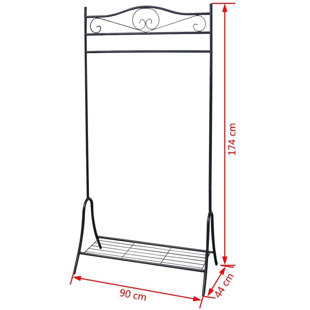 Dieser standfeste Kleiderständer ist eine schnelle und bequeme Aufbewahrungsmöglichkeit für Ihre Kleidung. Er lässt sich überall platzieren und hält Ihre Kleidung faltenfrei und organisiert. Dieser Kleiderständer mit Kleiderstange und Boden schafft extra Stauraum für Ihre Anzüge, Kleider, Schuhe und mehr. Es bietet Ihnen einfachen Zugriff auf Ihre Kleidung und Accessoires. Die eleganten Ornamente machen diesen Kleiderständer dekorativ und praktisch. Durch seine stabile Stahlkonstruktion hat er einen sicheren Stand, ist aber dennoch leicht. Auf dem Boden können Sie Schuhe oder Körbe lagern. Einfacher Aufbau.
