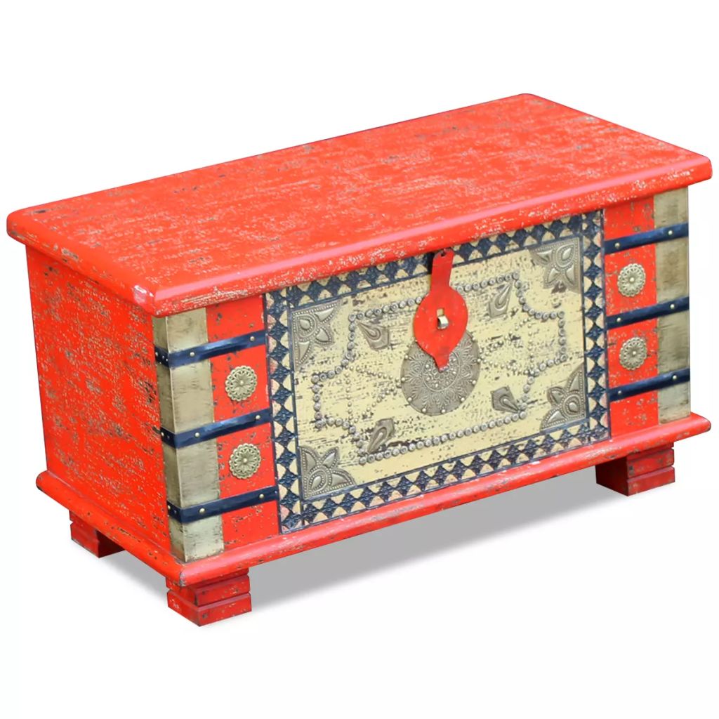 Diese Aufbewahrungstruhe im Antik-Stil wird eine einzigartige Ergänzung für Ihren Raum sein. Seine Massivholzkonstruktion macht sie stabil und zu einem sicheren Abstellplatz für Getränke, Obstkörbe oder Dekorationen. Wenn Sie die Truhe aufschließen (Schloss ist nicht im Lieferumfang enthalten), können Sie leicht eine große Anzahl von Gegenständen verstauen. Sie kann auch als dekorative Truhe oder Kaffeetisch verwendet werden. Hergestellt aus Mangoholz, der Tisch ist stabil, langlebig und wunderschön. Das Antik-Finish und die dekorativen Muster verleihen jedem Stück seine eigene Geschichte und das einzigartige Aussehen. Diese Indische Truhe ist komplett handgefertigt. Jeder Schritt, von der Zusammensetzung des Holzes über die Polieren und Bemalung bis hin zur Lackierung, wurde mit größter Sorgfalt durchgeführt.