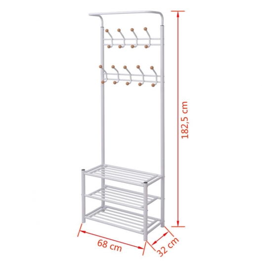 Diese Garderobe bietet eine sofortige, praktische und bewegliche Stauraumlösung für die Aufbewahrung von Mänteln, Schals, Hüten, etc. Die stabilen Ablageböden können zum ordentlichen Verstauen von Schuhen und anderen Gegenständen genutzt werden. Durch das einfache, aber stilvolle Design passt der Kleiderständer zu jedem Dekor. Der Zusammenbau ist kinderleicht.