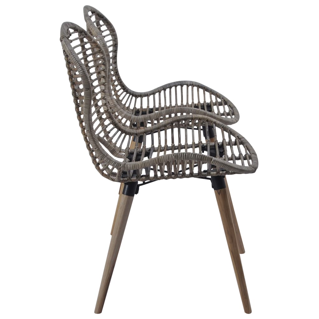 Diese einzigartigen Stühle aus natürlichem Rattan sind die perfekte Kombination aus Stil und Funktionalität. Sie werden ein echter Hingucker in deiner Küche oder deinem Wohnzimmer sein! Dank Sitzflächen und Rückenlehnen aus natürlichem Rattan sind die Stühle sowohl wasserabweisend als auch leicht zu reinigen. Die Holzbeine sorgen zudem für Stabilität und Langlebigkeit und verleihen diesem Stuhl-Set eine Vintage-Note. Diese Stühle passen zu jedem Dekor und lassen sich ganz einfach montieren. Die Lieferung umfasst 2 Esszimmerstühle.