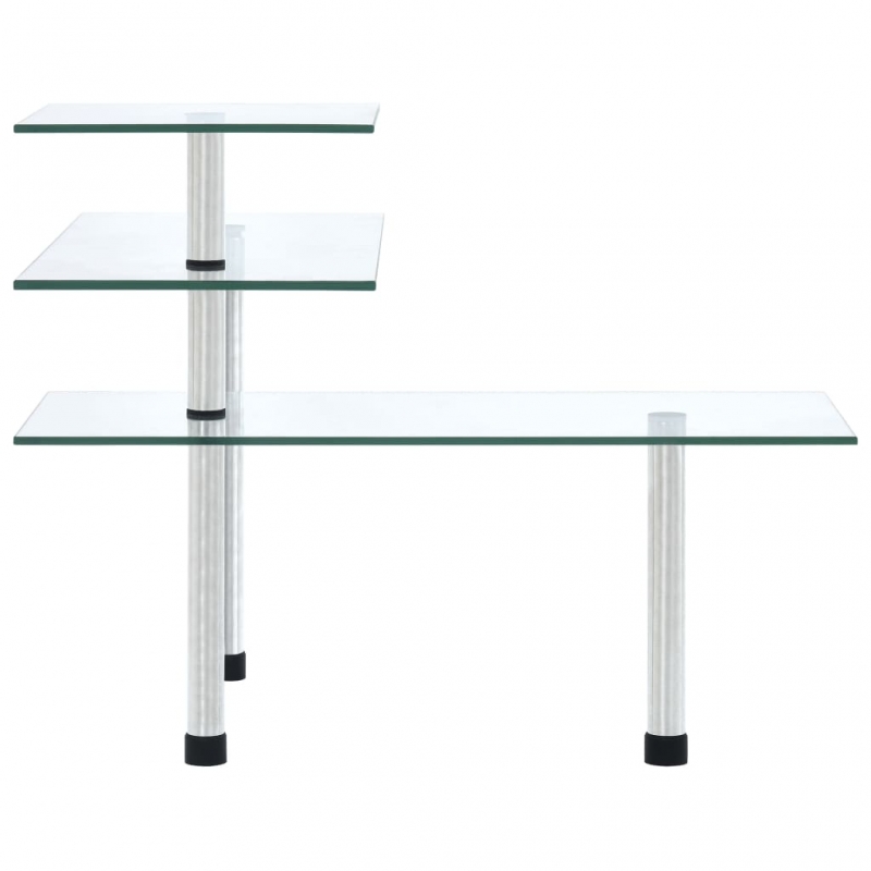 Mit diesem 3-stufigen Eckregal kann jeder kleine Raum gut genutzt werden. Diese Aufbewahrungseinheit bietet eine intelligente Aufbewahrungsmöglichkeit für Teller, Tassen oder sogar Konserven. Sie kann als Gewürzregal, Bücherregal, Organizer verwendet werden, um kleine Teller, Kunstobjekte, Bilder und mehr anzuzeigen. Sie können es in der Küche, im Büro, im Bad, im Schlafzimmer usw. verwenden. Diese Einheit besteht aus einer eleganten und praktischen Kombination aus Edelstahl und starkem Hartglas. Es ist rostbeständig und kann eine langfristige Verwendung gewährleisten. Dieses Regal passt dank seiner einstellbaren Lage zu jedem verfügbaren Raum. Die glatte Oberfläche ermöglicht eine einfache Reinigung. Dieses Regal ist einfach zu montieren.