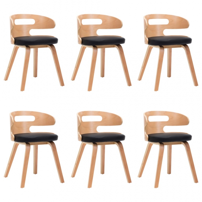 Esszimmerstühle 6 Stk. Schwarz Bugholz und Kunstleder
