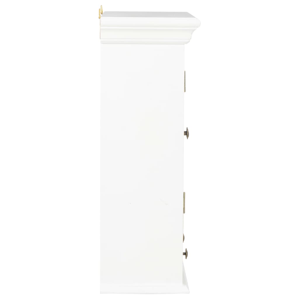 Dieser Mehrzweck-Wandschrank im französischen Stil kann in der Küche zum Aufbewahren von Gewürzen, Konserven und vielem mehr, im Badezimmer zum ordentlichen Aufbewahren von Badetüchern oder im Wohnzimmer zum Präsentieren von Büchern, Sammlerstücken, Dekorationen usw. verwendet werden. Der Hängeschrank im Landhausstil besteht aus Holzwerkstoff, der mit einer Lackierung versehen worden ist, die dem Schrank ein raffiniertes Aussehen verleiht und ihn pflegeleicht macht. Der Wandschrank verfügt über zwei Schubladen, die zusätzlichen Stauraum bieten, sowie zwei Acryl-Türen, die sich leicht öffnen lassen. Die klassischen Knäufe tragen zum Vintage-Stil des Schranks bei. Dank des Befestigungssystems lässt sich der Wandschrank leicht an der Wand anbringen. Das Möbelstück ist leicht zusammenzubauen.