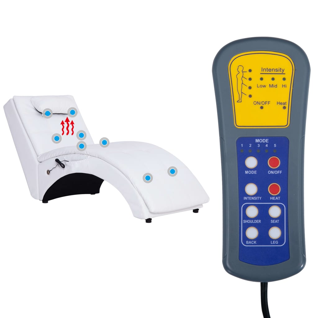Massage Chaiselongue mit Kissen Weiß Kunstleder