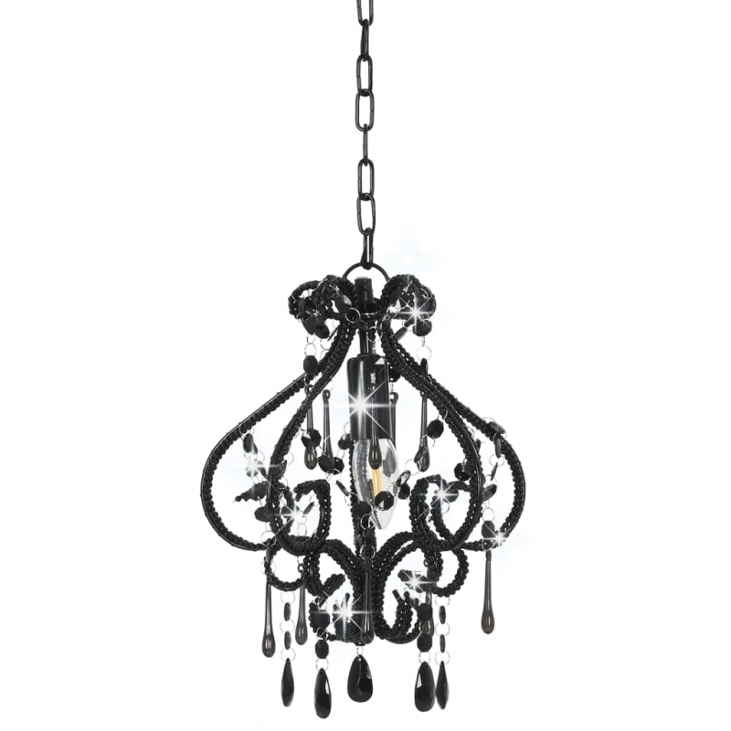 Deckenleuchte mit Perlen Schwarz Rund E14