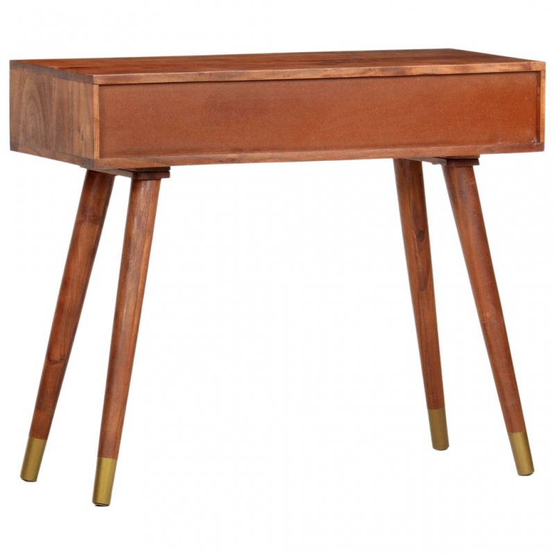 Dieser Konsolentisch im rustikalen Stil mit Schnitzmuster auf jeder Schublade wird eine großartige Ergänzung in Ihrem Wohnzimmer, Esszimmer, den Flur usw. darstellen. Der Tisch besteht aus massivem Akazienholz, das durch Polieren, Malen und Lackieren eine schöne Oberfläche erhält, um ein raffiniertes Aussehen zu erzielen. Der Tisch ist komplett handgefertigt und die schönen Holzmaserungen machen jedes Möbelstück zu einem Unikat. Die robuste Tischplatte eignet sich ideal zur Präsentation von Dekoartikeln, Bilderrahmen oder Topfpflanzen. In zwei leichtgängigen Schubladen können kleine Gegenstände wie Schlüssel, Notizblöcke, Stifte und andere Kleinigkeiten aufbewahrt werden. Es kann auch als Schreibtisch, Beistelltisch, Seitenschrank usw. verwendet werden. Es ist leicht zu reinigen und mit einem feuchten Tuch zu pflegen. Der Konsolentisch ist einfach zu montieren. Wichtiger Hinweis: Die Farben variieren von Artikel zu Artikel, was jeden Konsolentisch einzigartig macht; die Lieferung erfolgt nach dem Zufallsprinzip.