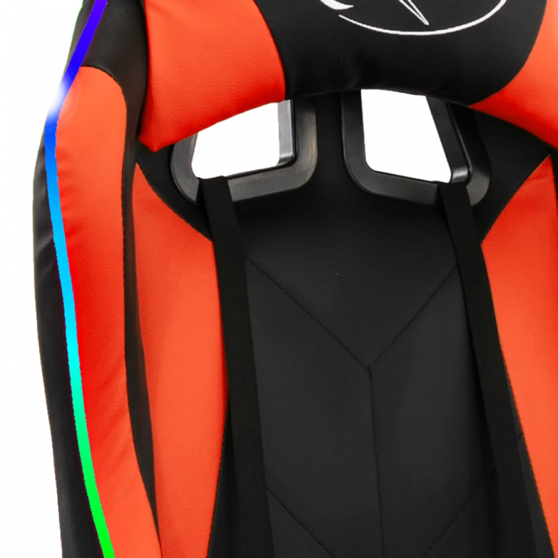 Dieser unverwechselbare und luxuriöse Gaming-Stuhl bietet einen äußerst komfortablen Platz zum Spielen oder Arbeiten. Dieser Gaming-Stuhl ist mit Kunstleder bezogen und lässt sich daher einfach reinigen. Die mitgelieferten, dick gepolsterten Kopf- und Taillenkissen bieten zusätzlichen Komfort während der Arbeit. Dank Gasfedermechanismus ist dieser Bürostuhl höhenverstellbar. Er lässt sich auch in Liegeposition bringen, wenn Sie also Lust auf ein Nickerchen haben, müssen Sie nur die Rückenlehne in vollständig zurückgelehnter Position arretieren. Darüber hinaus ist der Stuhl um 360 Grad drehbar und lässt sich dank 5 Rollen ganz einfach umher verschieben. Der Rand der Rückenlehne ist mit LED-Leuchten ausgestattet, um eine bessere Gaming-Atmosphäre zu schaffen. Mit der Fernbedienung können Sie einfach die Farbe und den Blinkmodus der Leuchten wechseln.