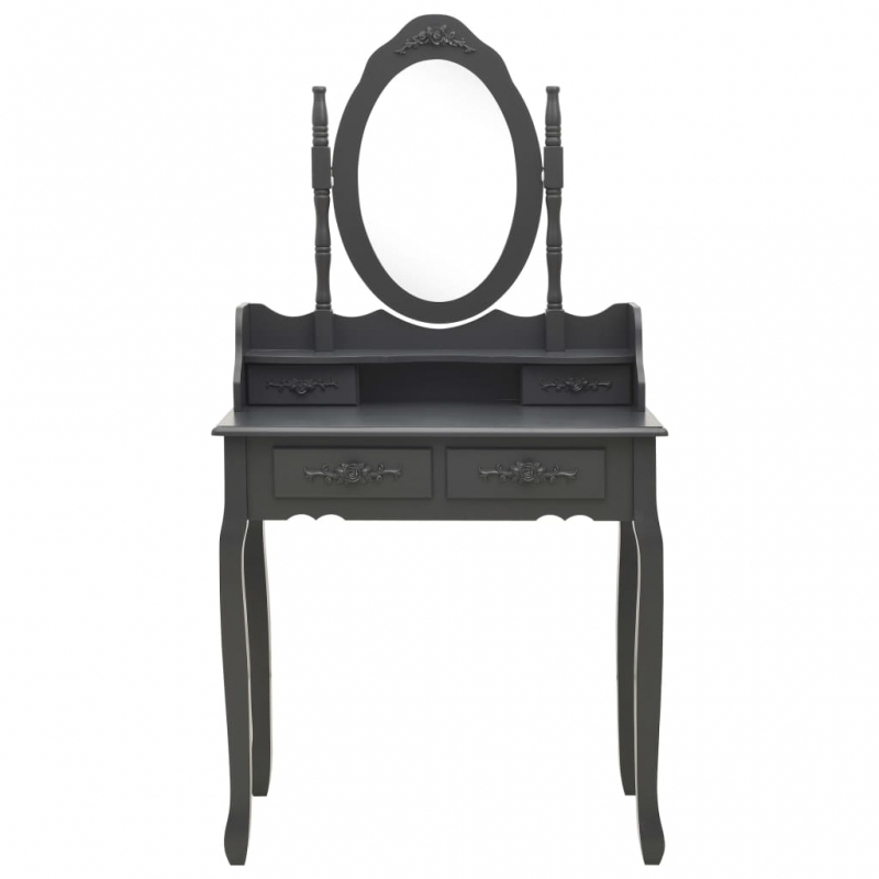 Schminktisch-Set mit Hocker Grau 75x69x140 cm Paulownia-Holz