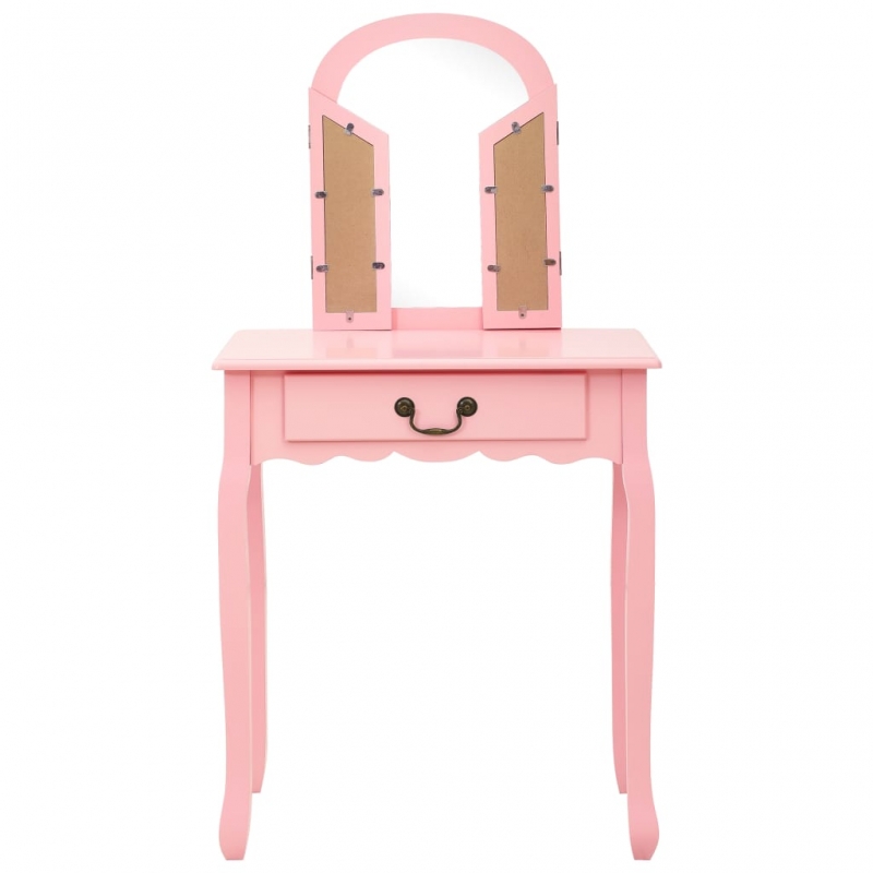 Schminktisch mit Hocker Rosa 65x36x128 cm Paulownia-Holz MDF