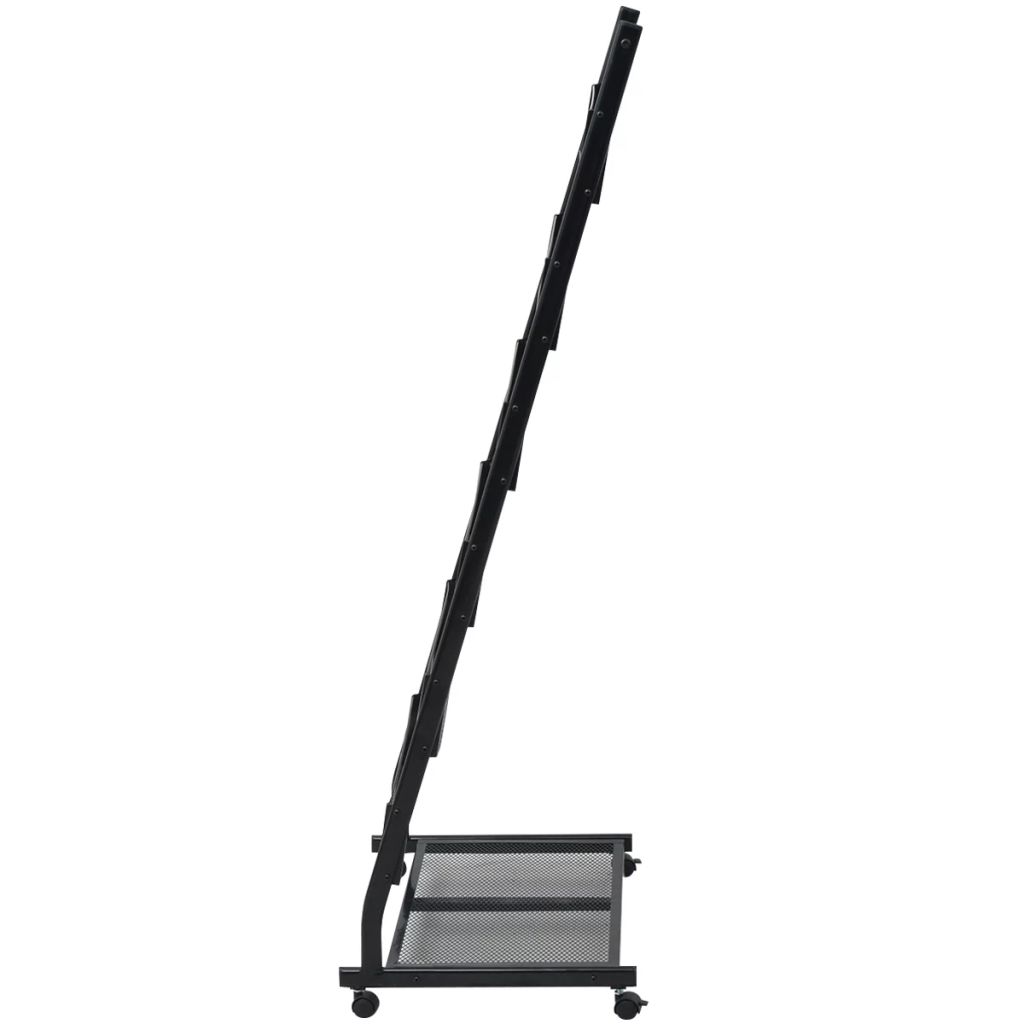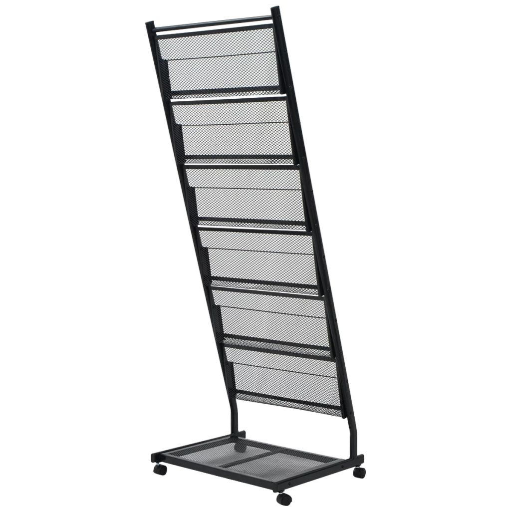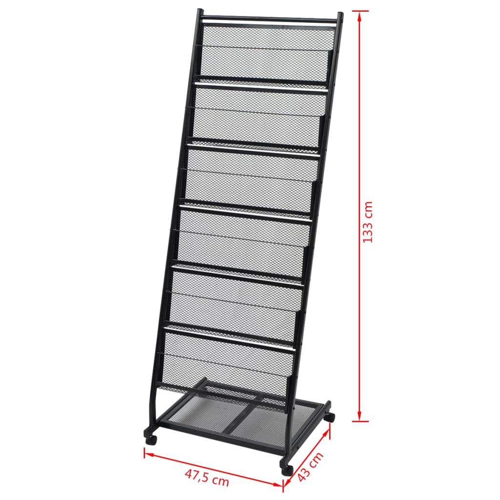 Dieser Zeitschriftenständer im ansprechenden Design dient zum Aufbewahren und Ausstellen von Zeitschriften, Broschüren oder Büchern. Die sechs großen Regale bieten reichlich Platz für A4-große Broschüren, Bücher oder Zeitschriften. Dank der Rollen ist der Ständer leicht zu bewegen. Dank seines modernen Designs passt er zu fast jedem Interieur. Der Zeitschriftenständer passt sowohl in Büros als auch in Wartezimmer, Wohn- oder Schlafzimmer. Einfach aufzubauen.