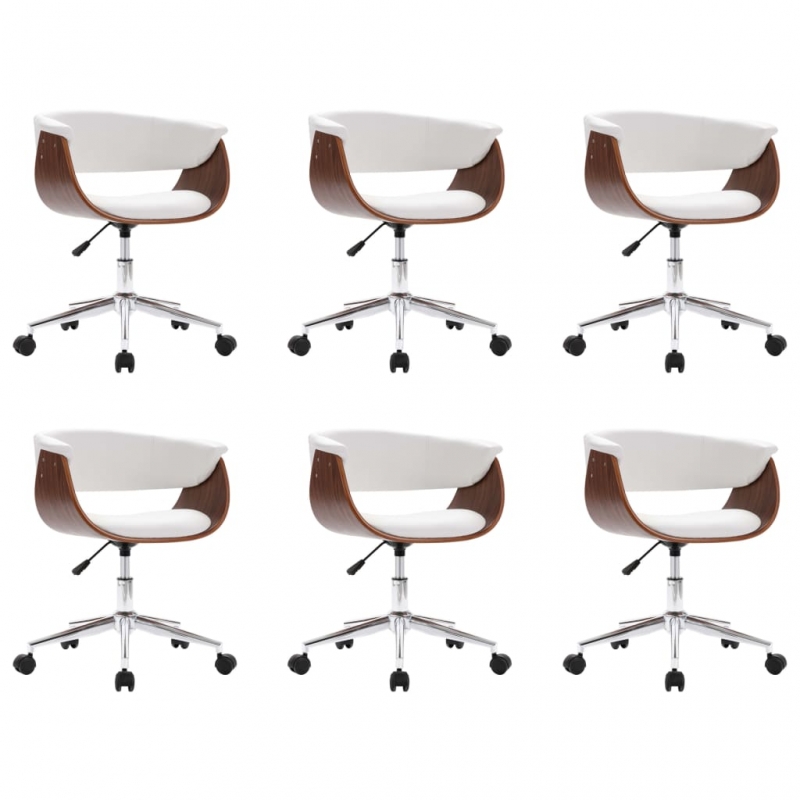 Dieses Set aus 6 drehbaren Esszimmerstühlen mit stilvollem und modernem Design ist eine perfekte, praktische und moderne Ergänzung für jedes Wohnzimmer, Esszimmer, Büro und jeden Loungebereich. Es bietet einen bequemen Platz für Ihre Familie, um im Esszimmer Mahlzeiten zu genießen oder im Wohnzimmer zu speisen und sich auszuruhen. Sitz und Rückenlehne sind ergonomisch geformt, mit weichem Kunstleder bezogen und mit Schaumstoff dick gepolstert, was den Stuhl sehr bequem macht. Das Holzgestell und die Metallbeine tragen zu seiner Langlebigkeit bei und sind auch ästhetisch ansprechend. Der Stuhl ist um 360 Grad schwenkbar und verfügt über einen höhenverstellbaren Mechanismus mit Gasfedermechanismus. Diese Esszimmerstühle sind leicht zu montieren.