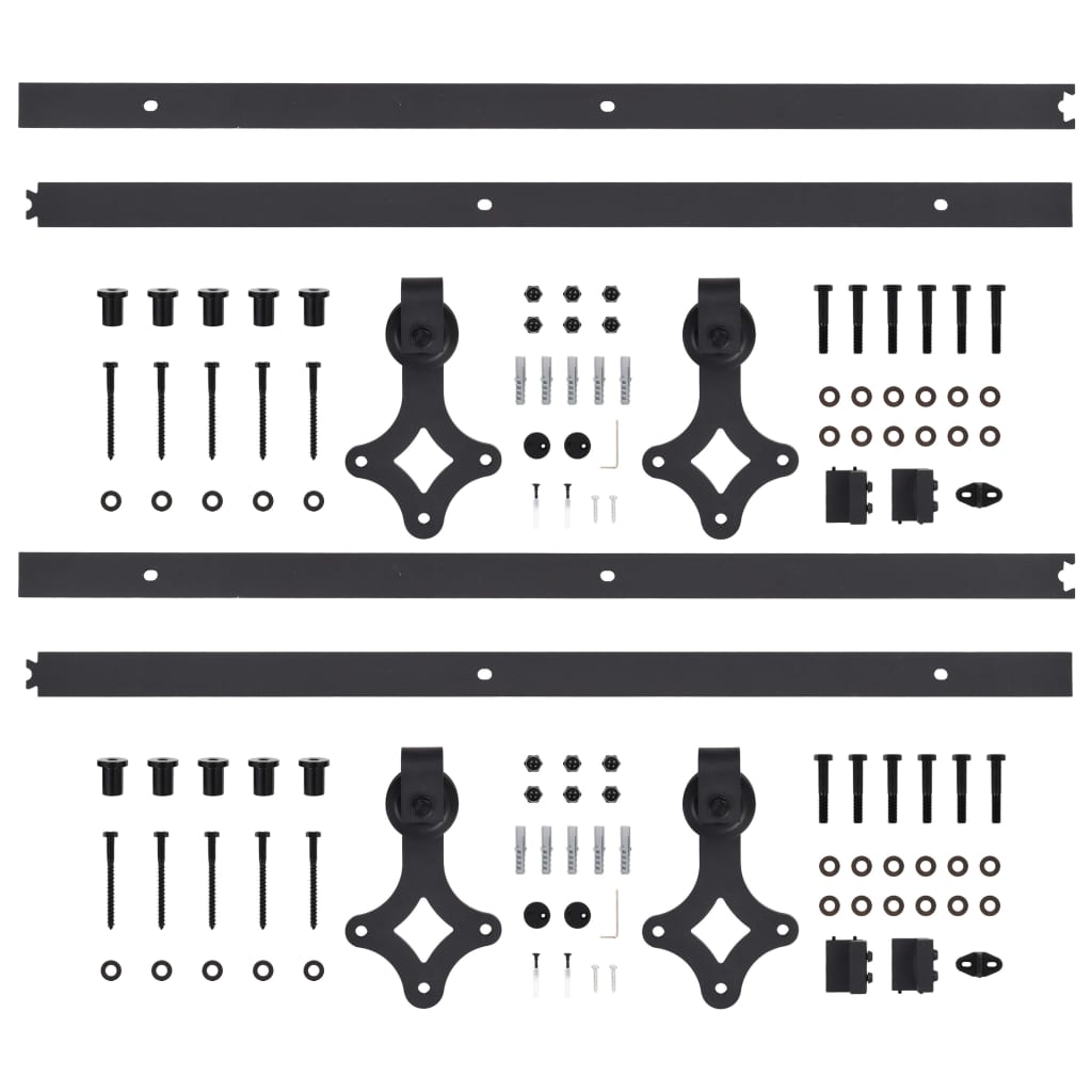 Schiebetür-Beschlagsätze 2 Stk. 200 cm Stahl Schwarz