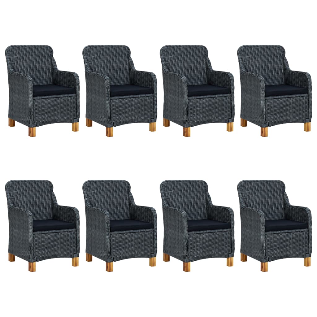 Diese Essgruppe ist die perfekte Kombination aus Stil und Funktionalität und wird ein echter Hingucker in Ihrem Garten oder auf der Terrasse bzw. dem Balkon sein! Das Möbelset besteht aus leichtgewichtigem, pflegeleichtem, rundem PE-Rattan und eignet sich daher nicht nur perfekt für den Einsatz im Außenbereich, sondern lässt sich auch einfach mit einem feuchten Tuch reinigen. Dank der pulverbeschichteten Stahlrahmen sind die Sessel und der Tisch stabil und langlebig. Die robuste Tischplatte bietet den perfekten Platz für verschiedene wichtige Sachen. Die dick gepolsterten Auflagen sorgen für zusätzlichen Komfort in Ihrer Freizeit. Ihre Bezüge sind mit Reißverschlüssen versehen und somit abnehmbar und waschbar. Zudem tragen die Beine aus massivem Akazienholz zur Robustheit und Stabilität der Sessel bei. Dank seiner Leichtbauweise lässt sich dieses Möbelset auch einfach umstellen. Hinweis: Wir empfehlen, das Set bei Regen, Schnee oder Frost abzudecken.