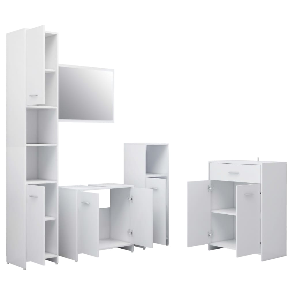 Mit diesem 4-teiligen Badmöbel-Set können Sie zusätzlichen Stauraum im Ihrem Badezimmer schaffen. Die klaren Linien und das schlanke Design fügen sich perfekt in Ihr Zuhause ein. Dieses Badmöbel-Set enthält einen Badezimmerschrank, einen Waschbeckenunterschrank, einen niedrigen Badschrank und einen Hochschrank. Diese Schränke bieten verschiedene Aufbewahrungsmöglichkeiten und zusätzlichen Platz für die Aufbewahrung von verschiedenen Sachen in Ihrem Badezimmer. Außerdem lässt sich das Badezimmermöbel-Set einfach mit einem feuchten Tuch reinigen.