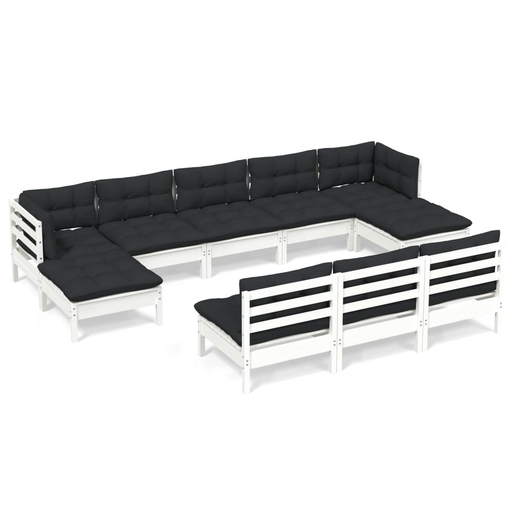10-tlg. Garten-Lounge-Set mit Kissen Weiß Kiefernholz