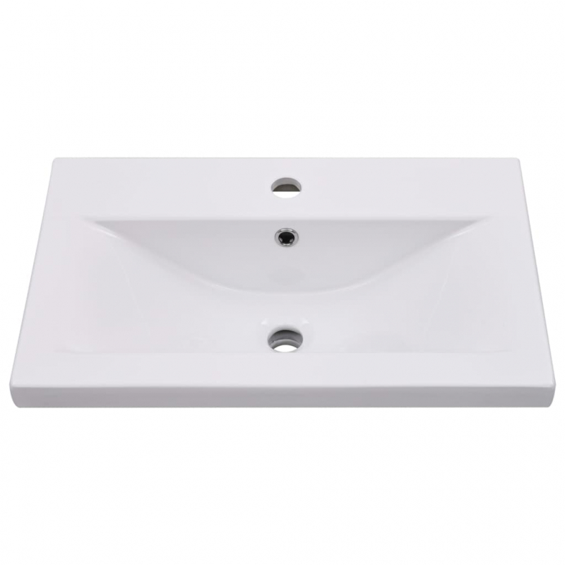Mit seiner auffälligen und sauberen Optik passt dieser Waschbeckenunterschrank mit Einbaubecken perfekt zu Ihrem Bad oder Waschraum. Der Schrank ist aus Spanplatte gefertigt, wodurch er robust und stabil ist. Mit 1 Schublade bietet der Lagerschrank auch viel Platz zum Verstauen verschiedener Sachen. Er passt perfekt unter das Waschbecken und bietet eine bequeme Aufbewahrungslösung im Badezimmer. Aus Keramik gefertigt, dient das Becken nicht nur als täglicher Gebrauchsgegenstand, sondern auch als Ornament in Ihrem Wohnbereich. Dank seines zukunftsweisenden und modernen Designs passt dieser Waschtisch definitiv in jede Einrichtung. Zudem ermöglicht der Überlauf das Abfließen des Wassers, wenn das Becken zu voll wird. Die glasierte Oberfläche verleiht dem Becken ein modernes und dennoch elegantes Design. Zudem lassen sich Schrank und Becken leicht mit einem feuchten Tuch reinigen. Bitte beachten Sie: Der Wasserhahn und der Ablauf sind nicht im Lieferumfang enthalten.