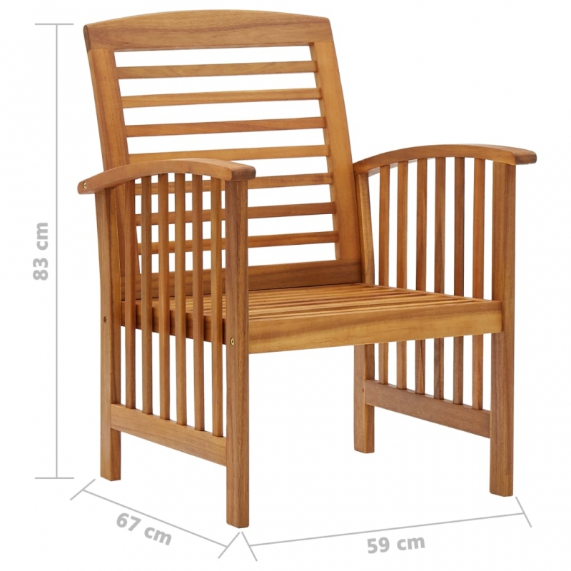 Dieses Set aus 2 Holz-Gartenstühlen wurde speziell dafür entworfen, ein Blickfang in Ihrem Garten, auf Ihrer Terrasse und in Veranda zu sein! Der Gartenstuhl besteht aus massivem Akazienholz mit Ölfinish und ist somit stabil und langlebig. Die Handwerkskunst und die schöne Holzmaserung machen jedes Möbelstück einigartig. Wichtiger Hinweis: Farbe und Maserung variieren von Stück zu Stück, so dass jedes Möbelstück einzigartig ist. Die Lieferung erfolgt nach dem Zufallsprinzip.