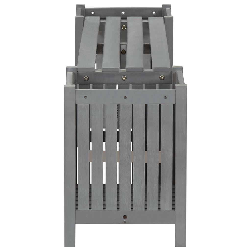 Verleihe deiner Terrasse oder deinem Unterhaltungsbereich eine einladende und angenehme Note mit dieser Gartenbank aus Holz! Die Gartenbank besteht aus massivem Akazienholz mit grauer Lackierung, wodurch sie stabil und für den Außenbereich geeignet ist. Die zwei seitlichen Pflanzkübel eignet sich ideal, um eine Vielzahl von Blumen oder Pflanzen anzubauen. Dadurch ist die Sitzbank eine ausgezeichnete Bereicherung für deinen Garten. Entspanne dich also auf dieser praktischen Holzbank mit Pflanzkästen!