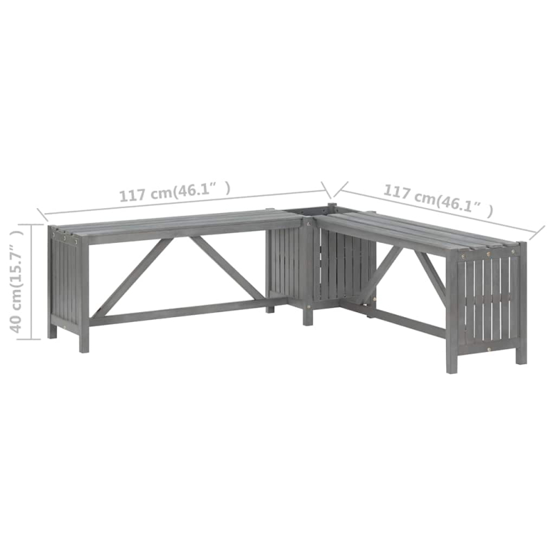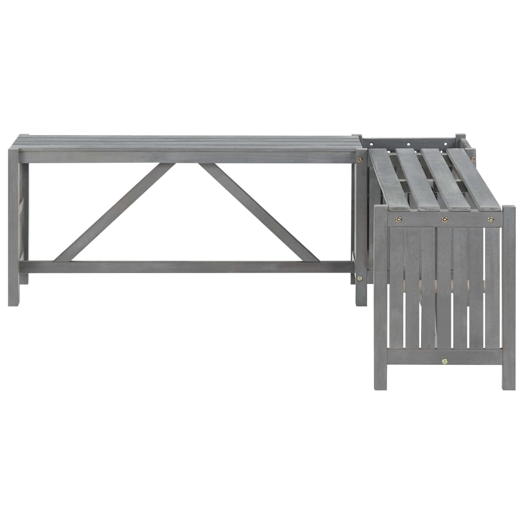 Verleihe deiner Terrasse oder deinem Unterhaltungsbereich eine einladende und angenehme Note mit dieser Gartenbank aus Holz! Die Gartenbank besteht aus massivem Akazienholz mit grauem Finish, wodurch sie stabil und für den Außenbereich geeignet ist. Der Pflanzkasten dient als großartiger Ort, um eine Vielzahl von Blumen oder Pflanzen anzubauen. Es ist eine hervorragende Ergänzung für Ihren Garten. Entspanne dich also auf dieser praktischen Holzbank mit Pflanzkasten!