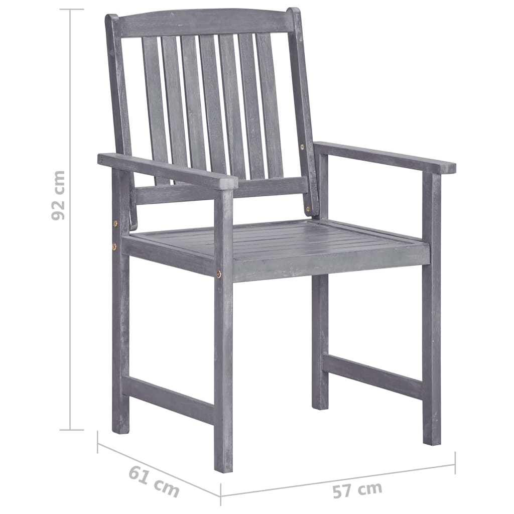 Mit diesem Set aus trendigen Holz-Gartenstühlen sorgen Sie für zusätzlichen Komfort in Ihrem Außenbereich. Es ist ideal geeignet, um mit Familie und Freunden zu plaudern oder einfach nur ein entspannendes Sonnenbad zu genießen! Dieses Gartenstuhl-Set besteht aus massivem Akazienholz mit grauer Lackierung. Massives Akazienholz ist ein Hartholz mit dichter Maserung, das nicht nur belastbar, sondern auch verschleißfest ist. Dieses Holzstuhl-Set ist daher stabil, langlebig und witterungsbeständig. Die Holzbeine sorgen für eine ausgezeichnete Stabilität. Darüber hinaus lässt sich die Stuhloberfläche ganz einfach mit einem feuchten Tuch reinigen.