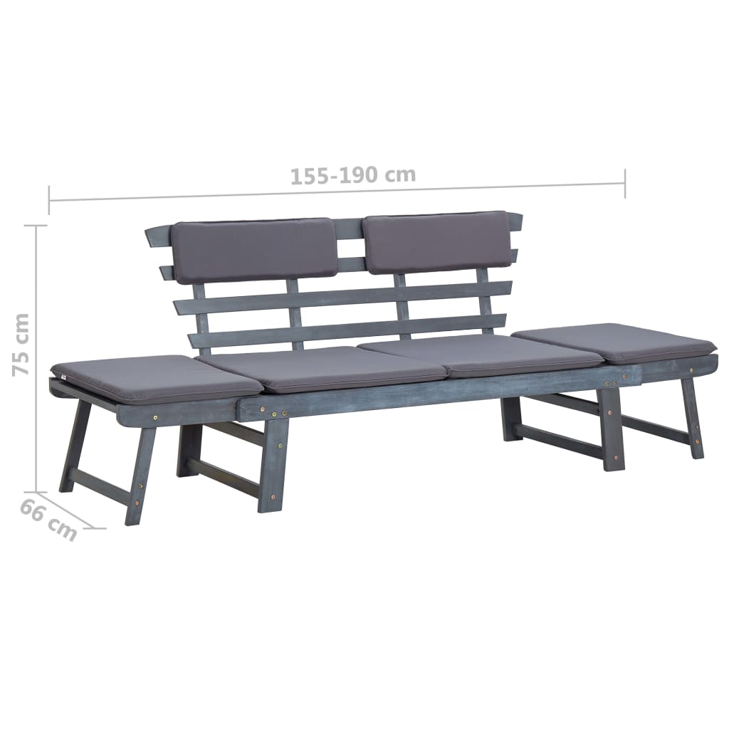 Diese Sonnenliege/Gartenbank aus Holz kombiniert Stil und Funktionalität und wird ein echter Hingucker in Ihrem Garten oder auf Ihrer Terrasse sein. Die Sonnenliege lässt sich dank der verstellbaren Seitenteile schnell und einfach von einer Bank zu einer Liege und wieder zurück umbauen. Die dicken, abnehmbaren Rücken- und Sitzkissen sorgen für höchsten Sitz- und Liegekomfort. Die Kissenbezüge können leicht abgenommen und gewaschen werden. Die Gartenbank besteht aus Akazienholz, einem Hartholz mit dichter Maserung. Sie ist daher wetterbeständig und für den Außenbereich geeignet.